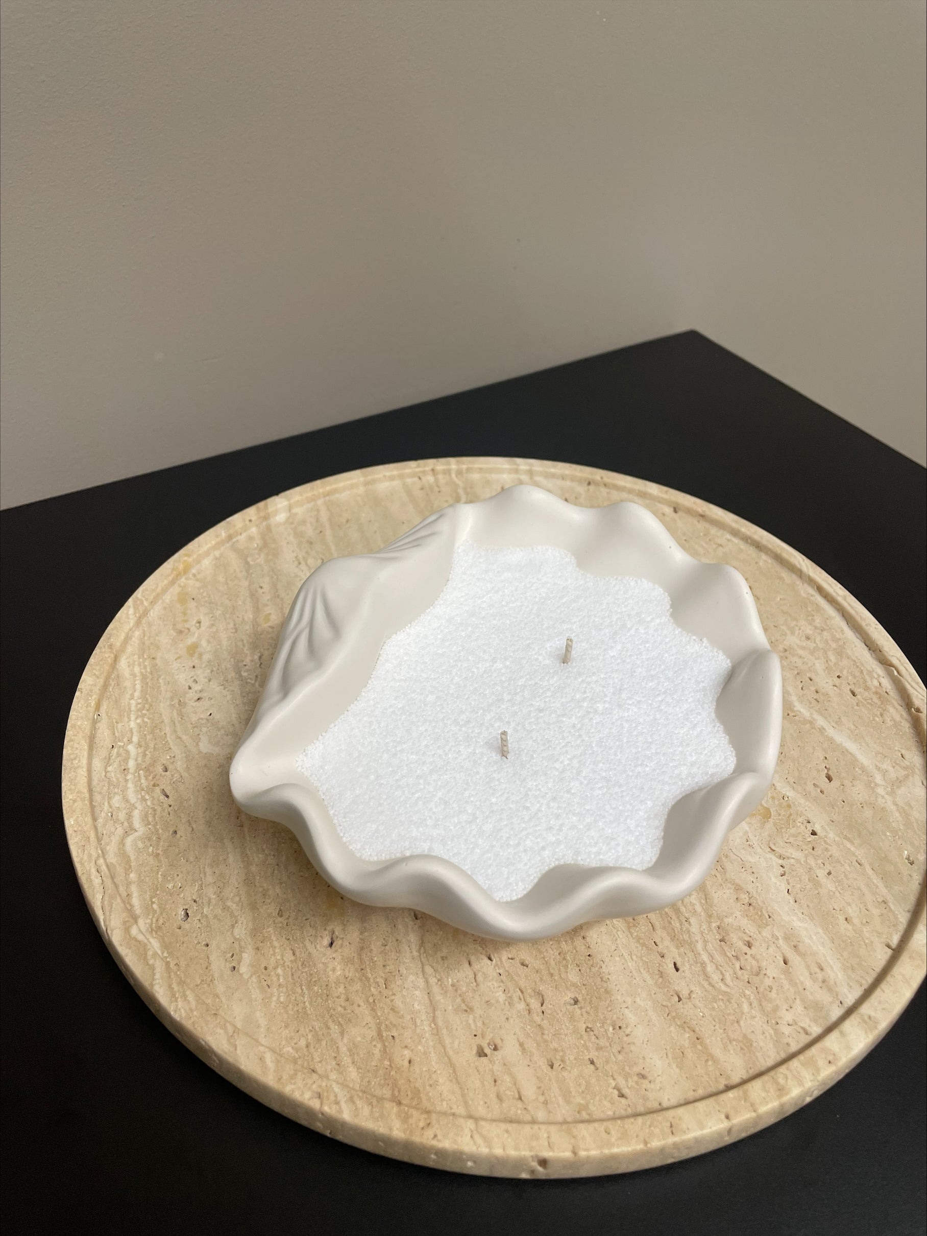 Plongez dans la douceur d’un univers marin avec notre coquillage en jesmonite, une pièce délicate et raffinée pensée pour accueillir votre sable de bougie.